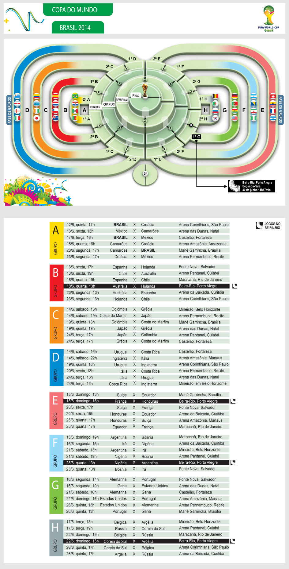 Confira a tabela da Copa 2014 com os cruzamentos até a final